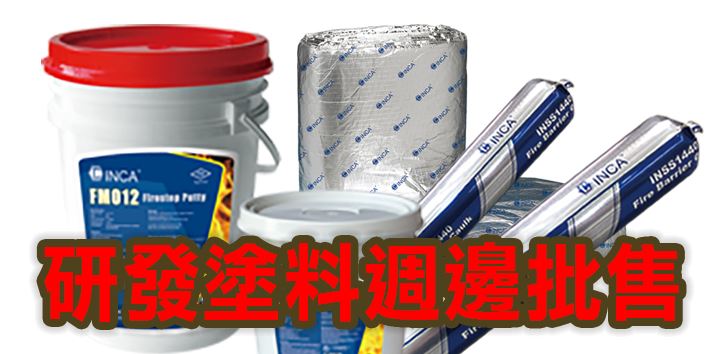 目前已開發: 超薄型鋼構防火塗料、電纜防火塗料、飾面型防火塗料、INCA截火系統、PVC抑煙劑、接著劑用阻燃劑、防火膨脹條、遮煙條、