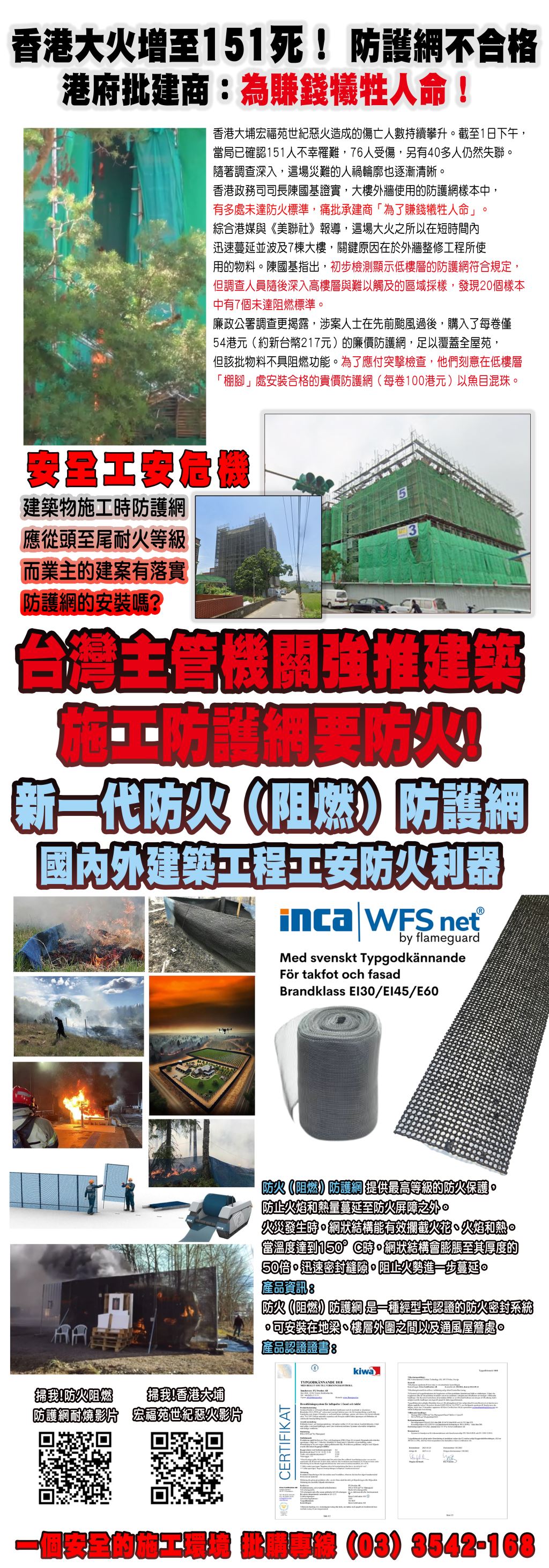 防火(阻燃)防護網 提供最高等級的防火保護,防止火焰和熱量蔓延至防火屏障之外。