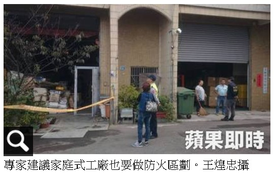 台中市烏日區一家住宅工廠今天凌晨發生火警,造成一家4口死亡悲劇,台中市消防局第三大隊長詹仁傑表示,根據現場狀況來看,工廠1到3樓為RC磚造建築,1樓為射出住宅工廠,2樓為木質隔間住家,並無障礙物,頂樓疑似因為屋齡老舊漏水而覆蓋鐵皮,但並不影響逃生或延燒,最致命的關鍵是二樓起火點,雖然是採用磚造隔間,但牆面卻是易燃的美耐板,導致火警發生後迅速延燒,而且不易撲滅詹仁傑說,火場內雖有簡易的排煙設備,但火勢來得太快,屋主夫婦疑似為了救受困的母親,喪失逃生的先機,其實火場對面就是生產住宅偵煙警報器的工廠, 如果屋主能在樓梯處裝設偵煙器,就能及早發現火勢,有利逃生。專長消防安全及災害防救的銘傳大學犯罪防治系副教授唐雲明說,他雖然沒有到現場看過,但根據媒體的描述,有可能是因為家庭兼工廠,不像一般工廠會進行防火區劃,又沒有設置住宅火警警報器,起火後溫度上升,甚至可能發生閃燃,導致屋內的人一瞬間就昏迷,無法逃生。唐雲明指出,這類家庭式工廠因為兼具住宅功能,但又不像一般住宅,必須放置大量材料,因此除了要裝設滅火器、偵煙警報器外,最好還是要進行防火區劃,使用防火建材做好隔間,避免讓容易產生火花的機器和易燃物品放置在同一區塊,才能保障住在裡面的人的安全(蔡智銘/台中報導)